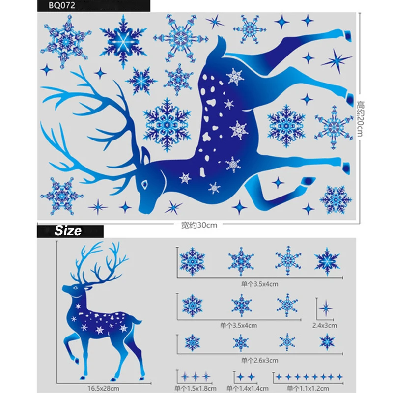 Рождественские наклейки на окна для дома, настенные стеклянные украшения, снежинка, лось, наклейки на новый год, домашние наклейки