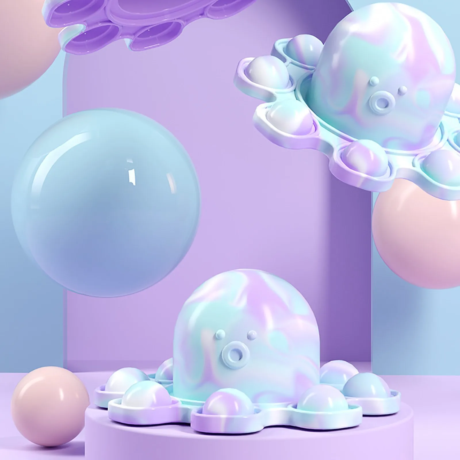 Поп-брелок-осьминог, игрушки для снятия стресса, радужная пузырьков...