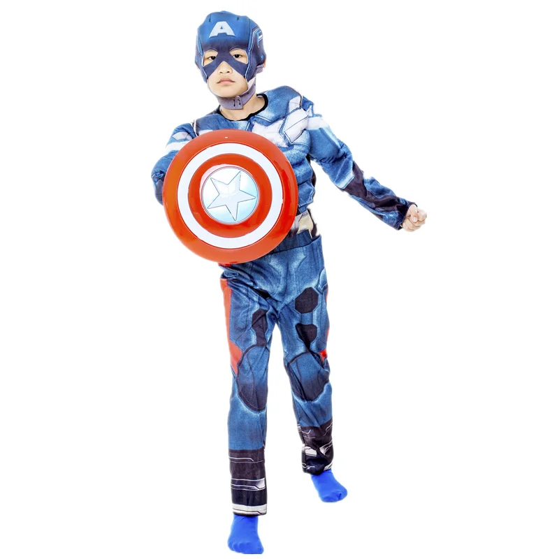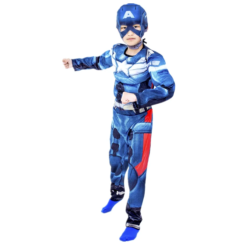 Хэллоуин зима Капитан Америка дети супергеройКостюм с мышцами; Вечерние костюмы для костюмированной вечеринки для мальчиков и девочек