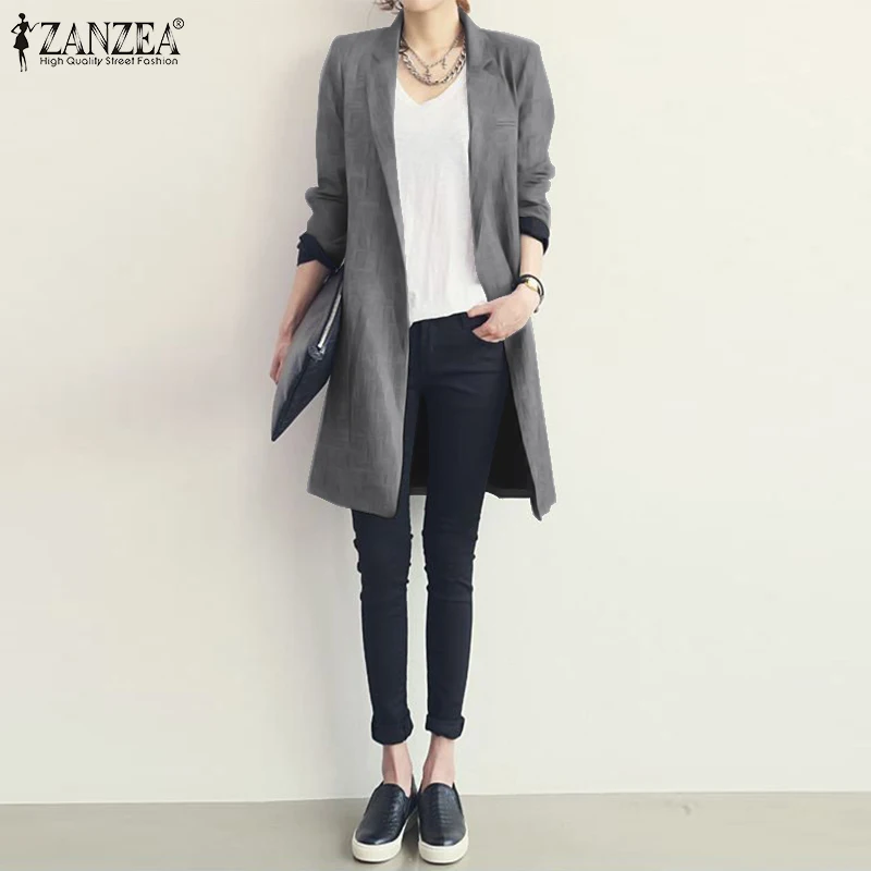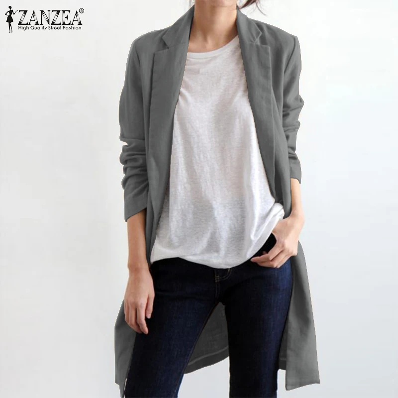 Элегантные тонкие пальто женские осенние куртки ZANZEA 2021 Повседневная с длинным рукавом Одежда Кардиган Женская хлопковая ветровка оверсайз