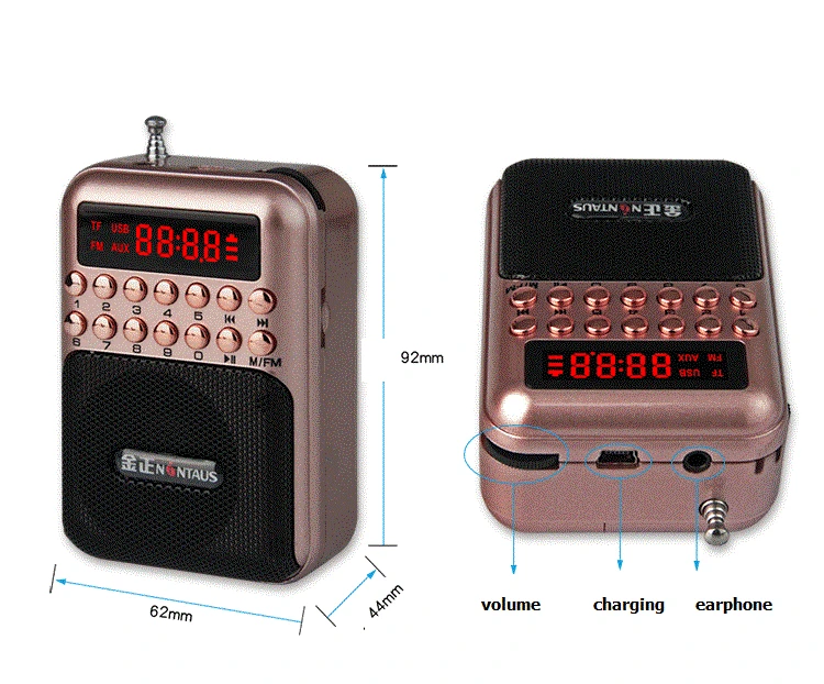 Карманное радио, FM-радио, портативный Перезаряжаемый радиоприемник, динамик с поддержкой USB TF карты, музыкальный mp3-плеер