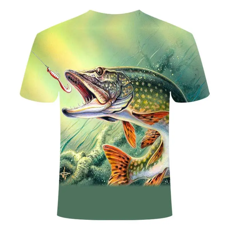 2019 Рыбацкая футболка в стиле кэжуал цифровая рыбка с коротким рук...
