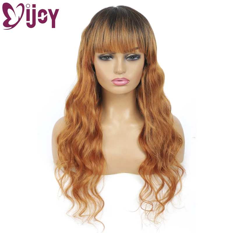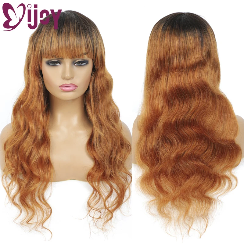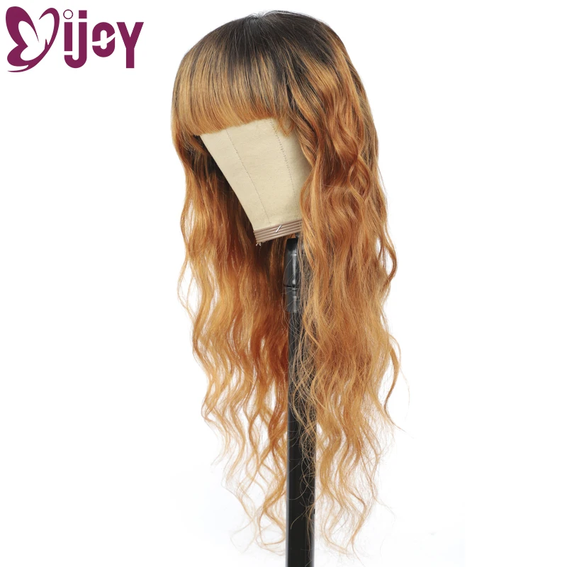 Парик IJOY из бразильских человеческих волос с челкой для черных женщин, парик с Омбре из коричневых волос, парик на 150% плотности, парик с волнистыми волосами
