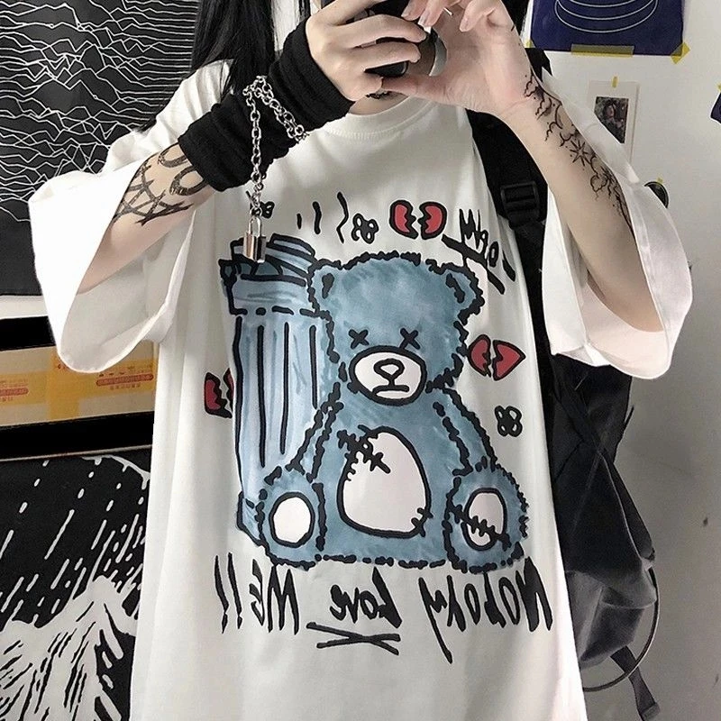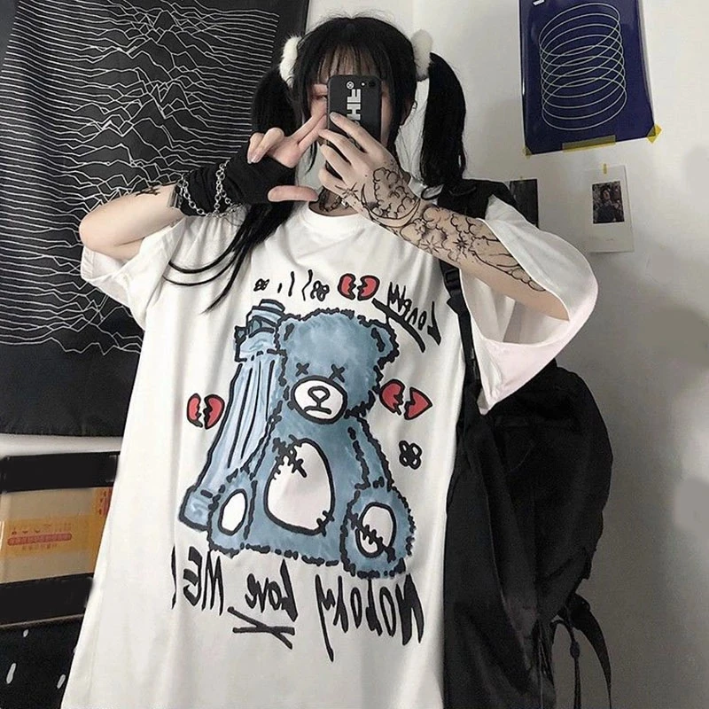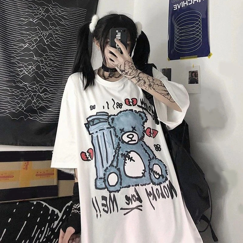 Женская футболка QWEEK с принтом медведя в стиле Харадзюку, 2021, Японская уличная одежда, одежда для Альта, эстетичный модный топ с мультяшным принтом, женские летние футболки