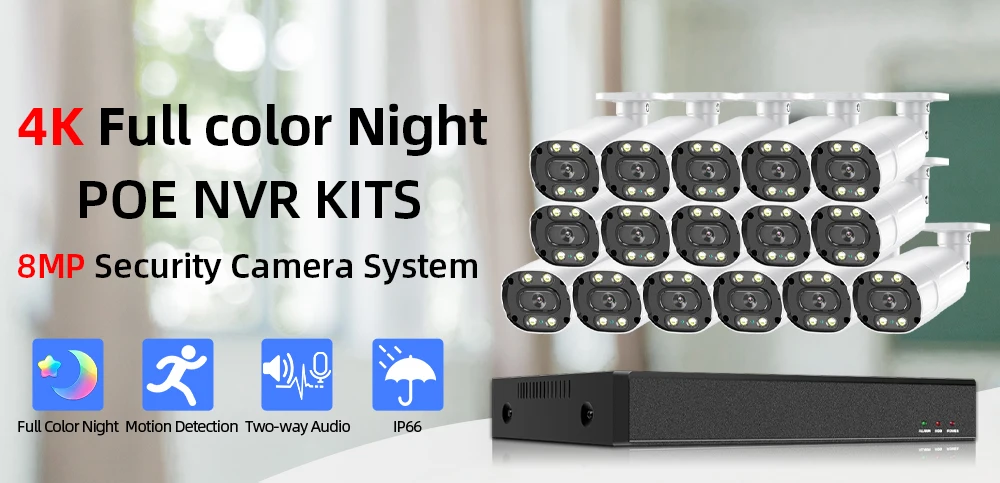 1. Все наши NVR и камеры являются реальными H.265 4K 8MP, NVR может поддерживать 8MP и 4K max, вы можете подключить 720p,1080p,3mp,4mp ,5mp, камеры 8mp & 4k с нашим POE NVR;2. Наш NVR поддерживает распознавание лиц, умное воспроизведение лица, обеспечивает ультра высокое разрешение видео наблюдения, обеспечивая максимальную детализацию и четкость в наличии;3. Наш NVR и камеры поддерживают расширенное H.265 Сжатие видео, питание через Ethernet, подключи и работай, простота установки;4. Все камеры встроены в микрофон и динамик, поддержка двухсторонней аудиозаписи;5. Все камеры имеют металлический корпус, IP66 водонепроницаемый, подходит для внутреннего и наружного использования, надежная Домашняя безопасность;6. Все камеры поддерживают Ultra HD Full Color Day Night Vision;7. Поддержка обнаружения движения, оповещения по электронной почте, воспроизведения видео и многоязычности;8. Поддержка Android,Iphone,Ipad,PC,VMS,P2P view;9. Удаленный доступ в любом месте, в любое время;10. Подходит для всех видов мест применения;