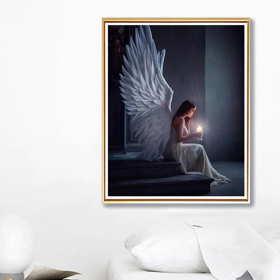 5ddiy Алмазная мозаика, полная алмазная живопись, белое крыло, ангел и свеча, вышивка крестиком, полная роспись, искусство, роспись, украшение для дома, подарок