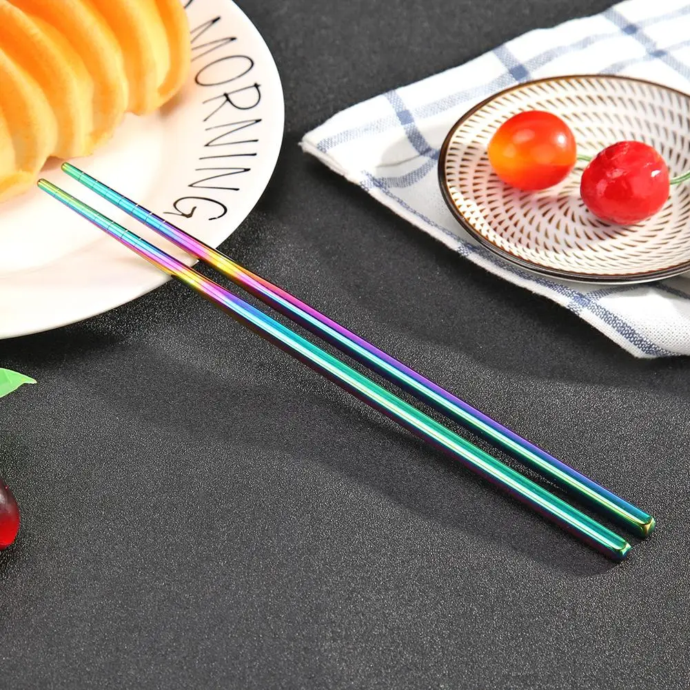 Палочки для еды, китайские, из нержавеющей стали, многоразовые, металлические палочки для суши, Хаши, палочки для еды, кухонные принадлежности