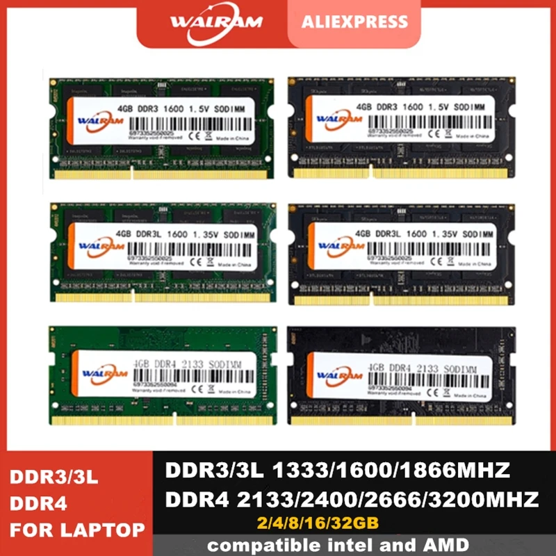 ОЗУ WAL RAM DDR3 DDR4 8 ГБ 4 ГБ 16 ГБ, ОЗУ для ноутбука 1333 1600 2400 2666 2133 DDR3L 204pin Sodimm, Память ram ddr4