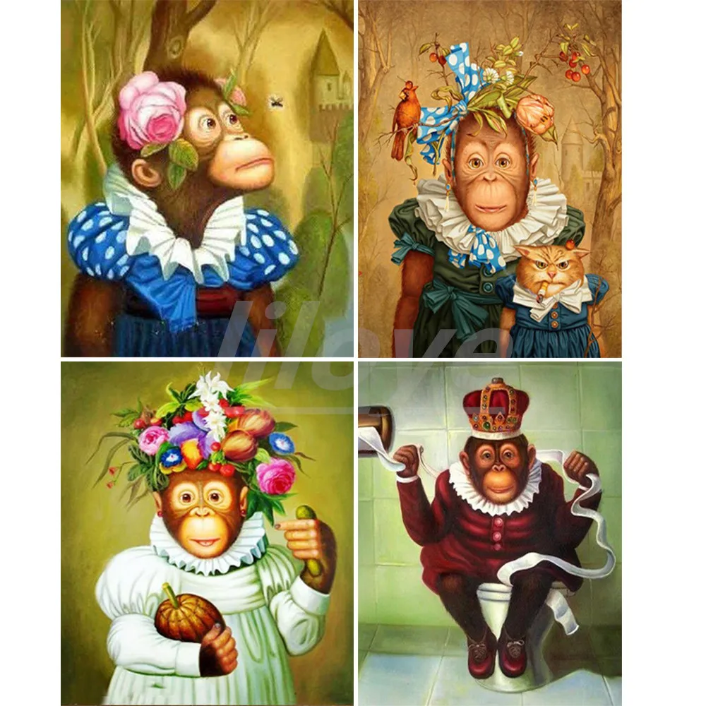 Алмазная живопись 5D сделай сам с цветами, обезьянка, полный квадрат, круглая 3D вышивка, картины, стразы, Набор для вышивки крестиком, декор DF564
