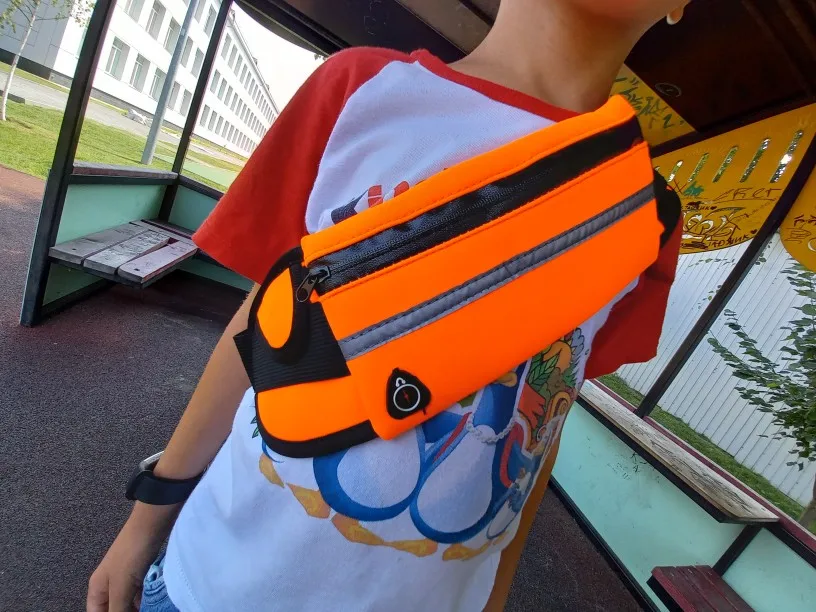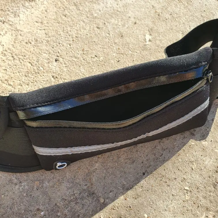 За свою цену отличная сумка. Большое отделение, легко помещается телефон, деньги, карты. Есть отделение для бутылочки воды, но я не планирую там носить её. С другой стороны маленький кармашек на липучке, в который можно положить наушники. Основное отделение на молнии. Внизу есть отверстие для проводных наушников. На лицевой стороне нанесена светоотражающая полоса. Сумка поясная, застегивается с помощью пластикового замка, ремень регулируется по обхвату талии. Доставка заняла почти месяц.