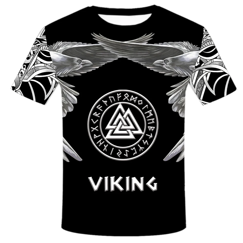 Новинка 2021, летняя модная футболка с татуировкой викингов, Мужска...