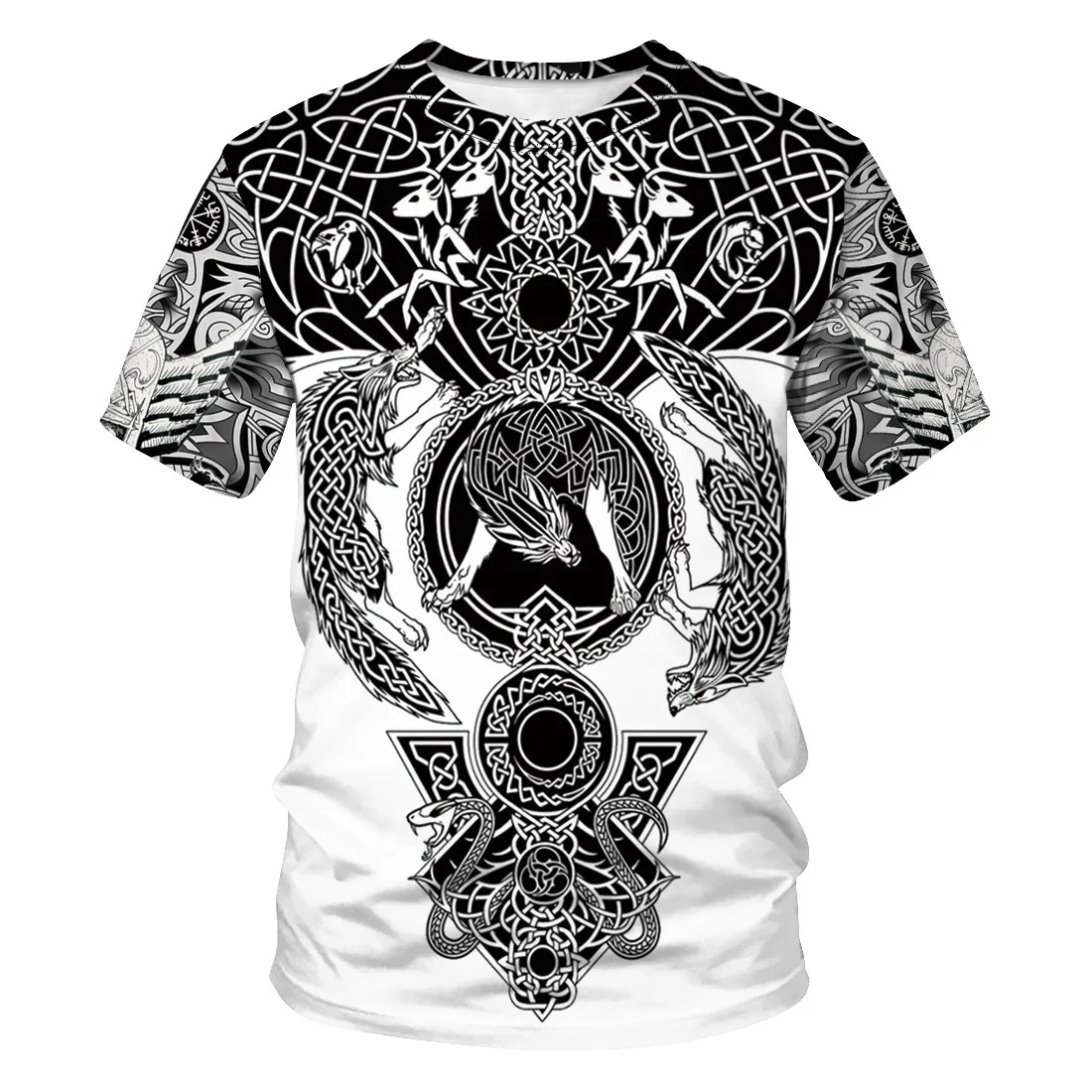 Новинка 2021, модная мужская футболка с 3D принтом викингов, татуир...