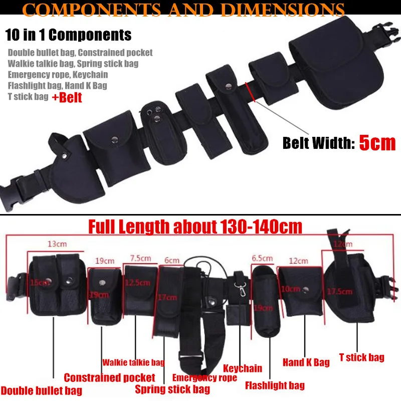 -Сверхмощный 2 "толстый Регулируемый ремень, подходит для талии 35-54 дюймов-Сделано из высококачественного блестящего нейлона 600D. Он прочный, тяжелый и блестящий. Включает:1 x Бесшумная кобура для ключей.1 x кобура для наручных манжет.1 чехол для фонарика.1 x двойная кобура для журналов.1 x кобура для охотничьих инструментов.1 x кобура для расширяемой дужки.1 x чехол для пейджера или сотового телефона.1 x чехол для радио (рация).1 x кобура для специй или перца.1 x ремень, чтобы ремень не выскакивал.1 х Регулируемый Нейлоновый ременьПосылка товара:1 шт. х тактический ремень (включает 10 шт. аксессуаров