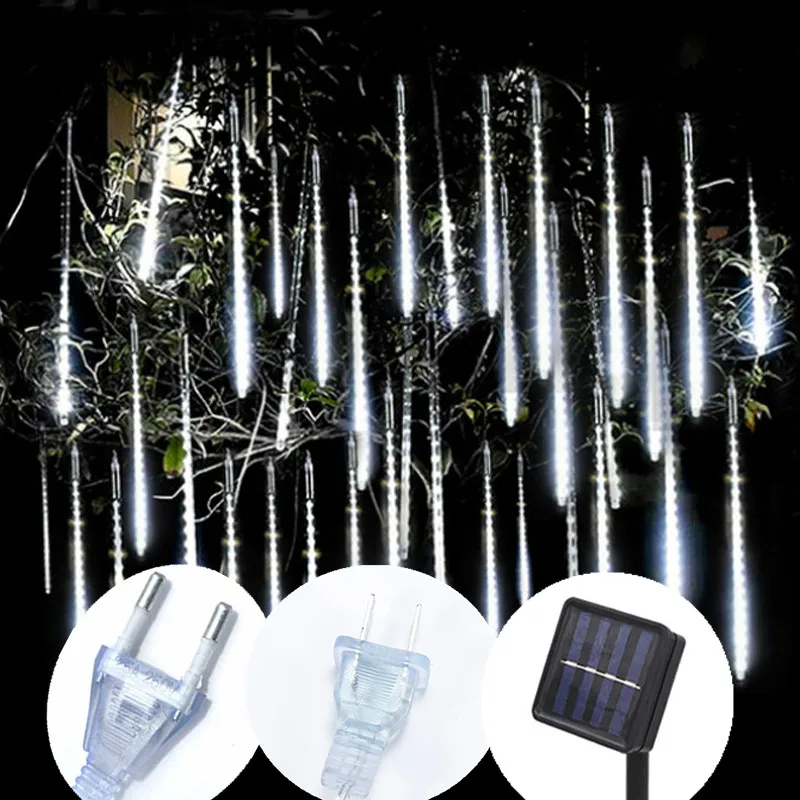 Водонепроницаемая светодиодная гирлянда метеоритный душ, 3 комплекта, 3050 см, 8 трубок, уличное Рождественское украшение для дома, елки, Солнечная уличная гирлянда