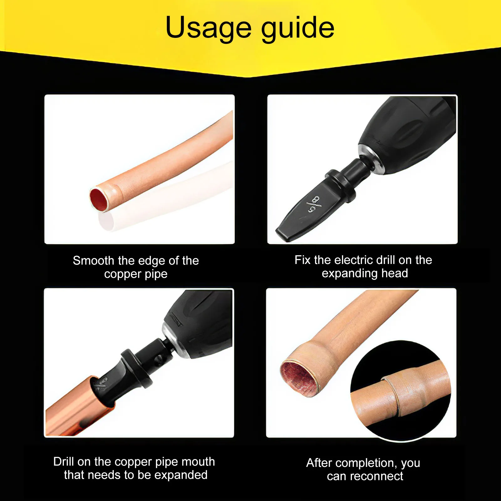 Этот расширитель труб может использоваться с ручными сверлами или электрическими дрелями для легкого расширения медных труб. (ручные дрели и электрические дрели не входят в комплект)