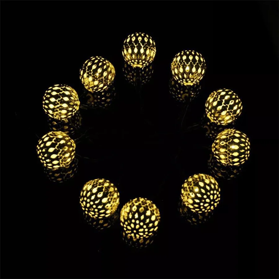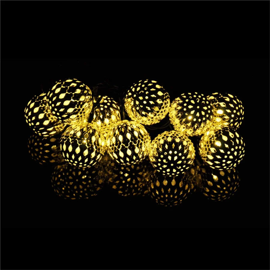 Уличная светодиодная гирлянда с марокканскими Шарами на солнечной батарее, железная арт-гирлянда, сказочный садовый светильник для свадьбы, вечеринки, рождественского декора, 203050 светодиодов