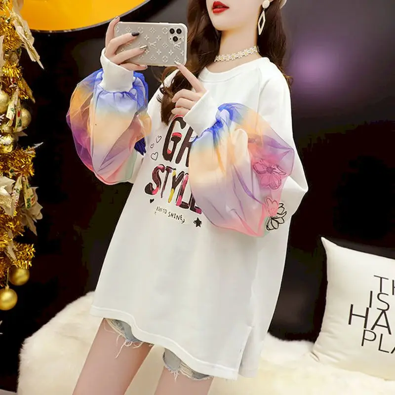 Свитшот женский оверсайз с рукавами-фонариками и надписью