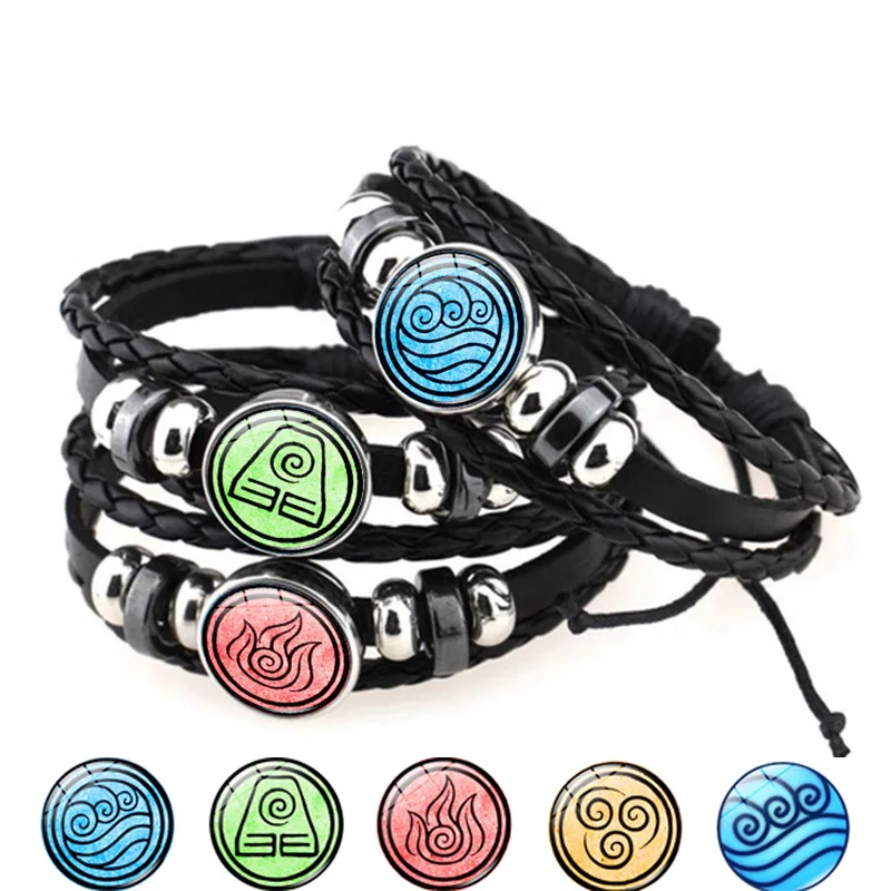 Браслет Avatar The Last Airbender воздушный Кочевник огонь и вода племя стеклянная защелка многослойный Плетеный Кожаный браслет мужской подарок
