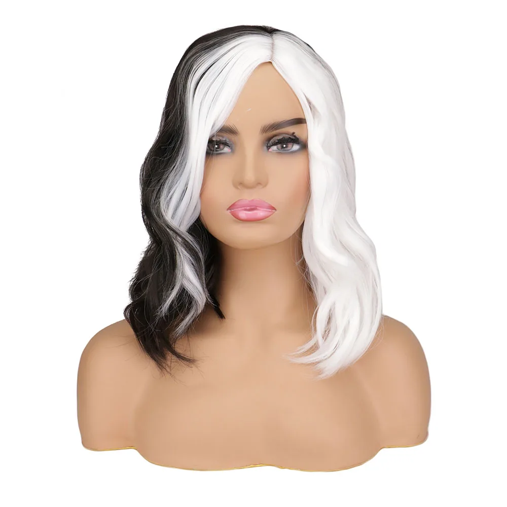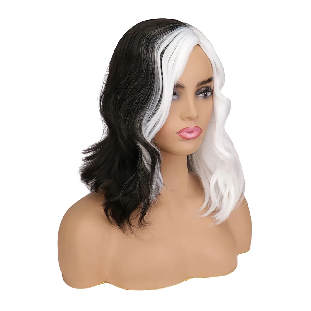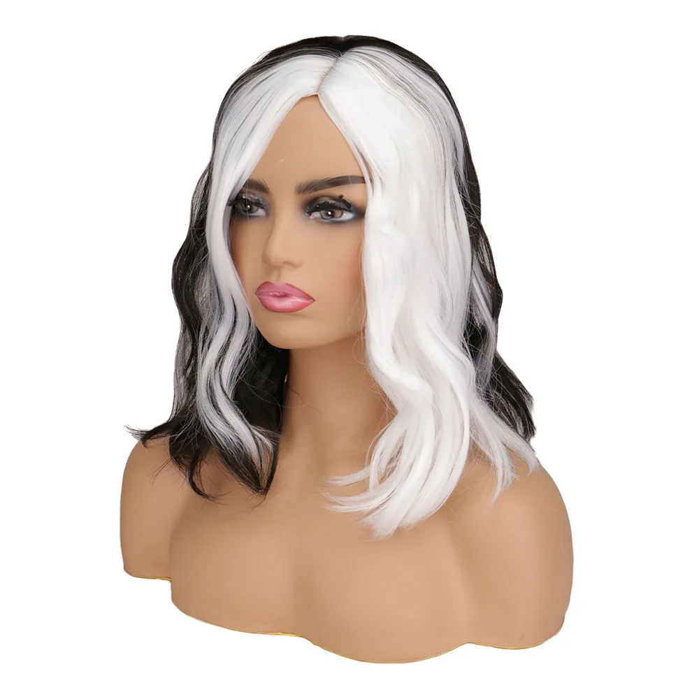 Парик Cruella из нового фильма, черно-белые парики для костюма, косплей, женские праздвечерние парики из высокотемпературного волокна, вьющиеся волосы