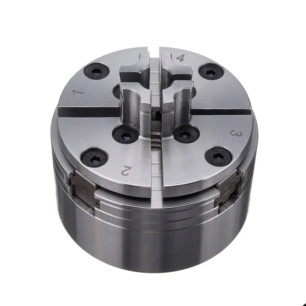 Особенности: Четыре челюсти надежно захватывают круглое и квадратное дерево. Специальный профиль ласточкин хвост на челюсти. Безопасный замок червячный винт включен для быстрого крепления грубого тимберленда. Функция автоматической остановки безопасности-кулачковые слайды не могут протекать мимо корпуса патрона. Направляющие челюсти изготовлены из высокотехнологичной меди плавленой стали для максимальной твердости, износа и самосмазывающихся свойств. До 400 мм/16 "Диаметр качели.