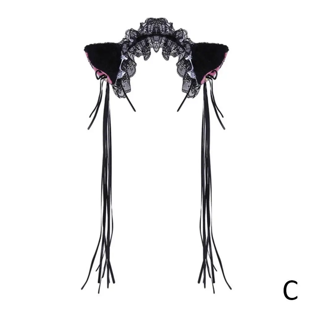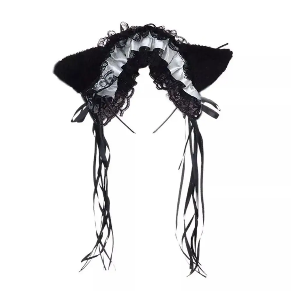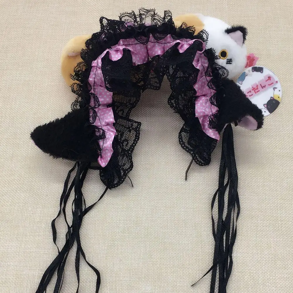 Новинка креативная Готическая Лолита горничная Женская Кружевная повязка на голову с оборками плюшевые кошачьи ушки семейная Лолита косплей обруч для волос