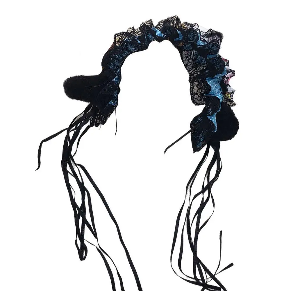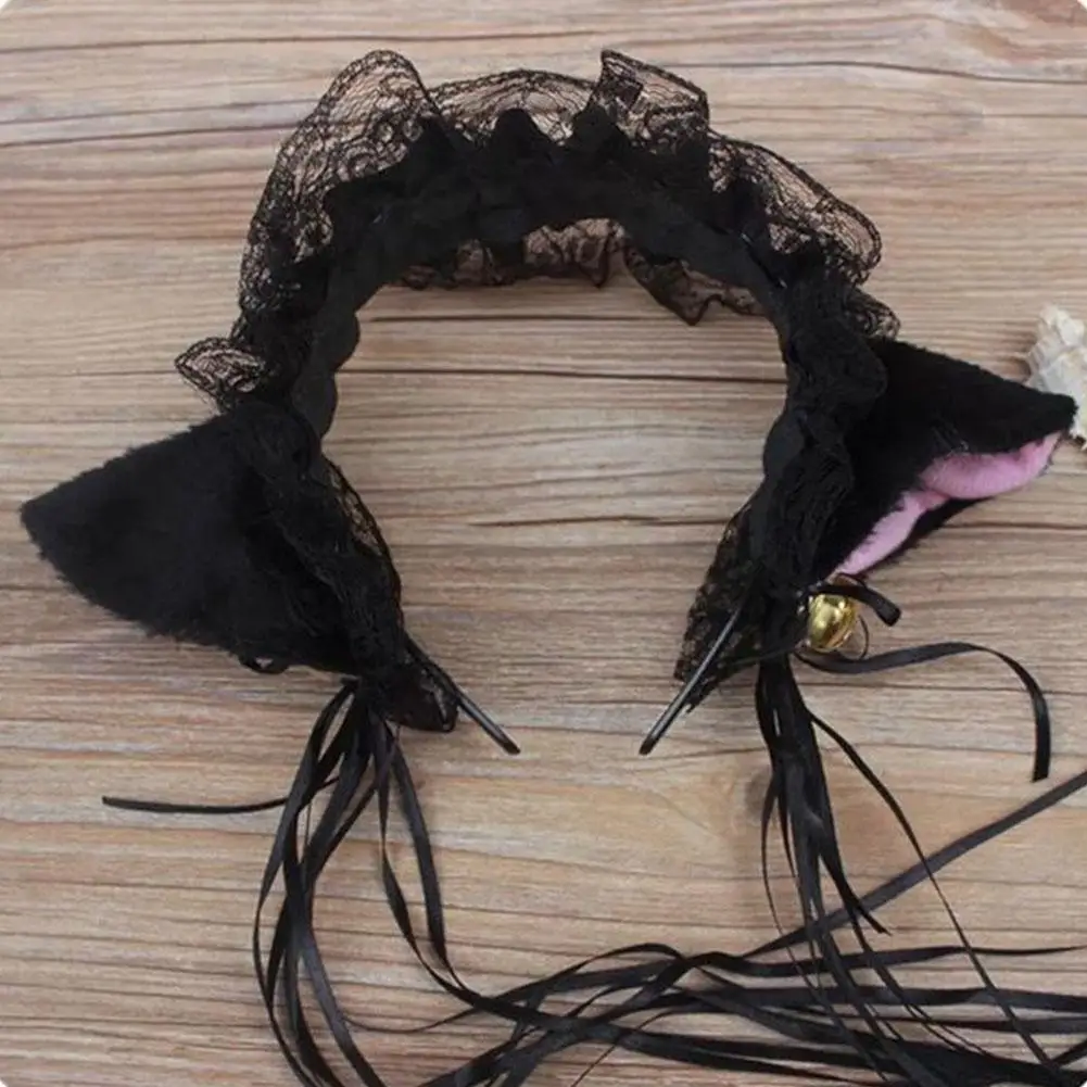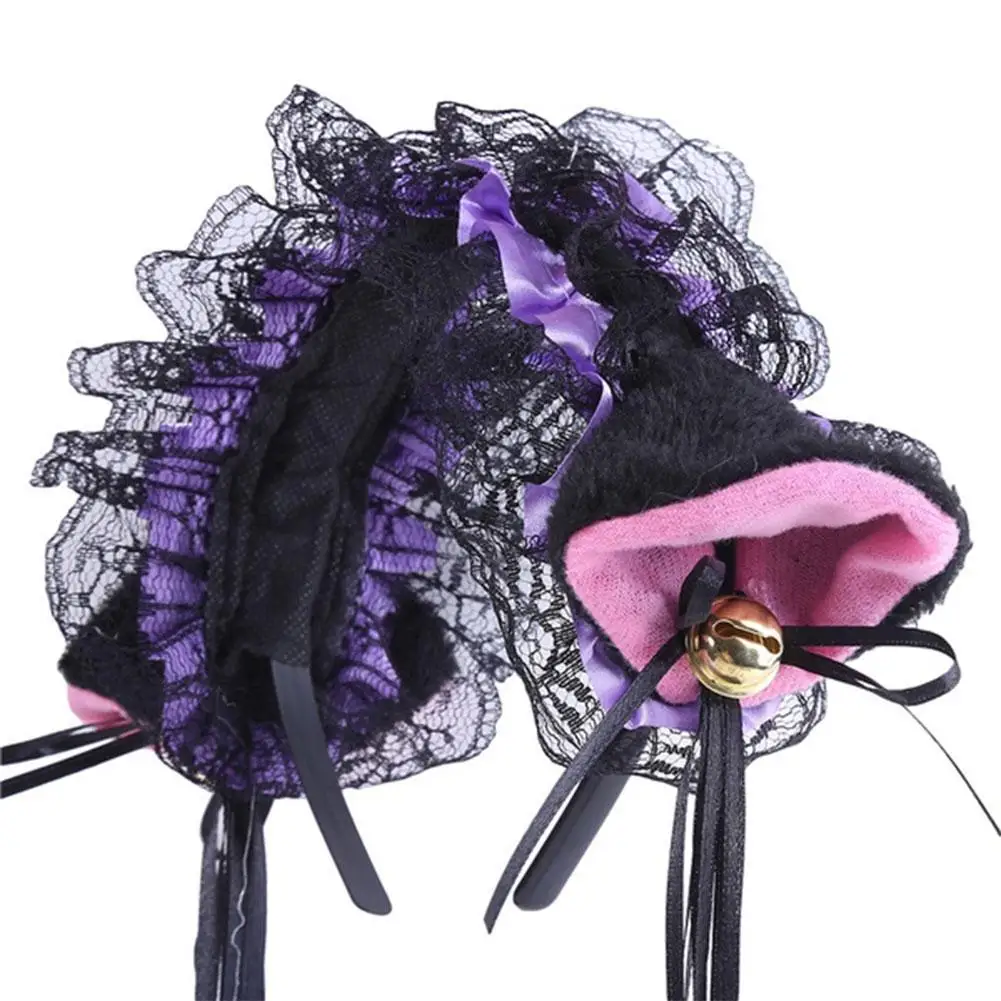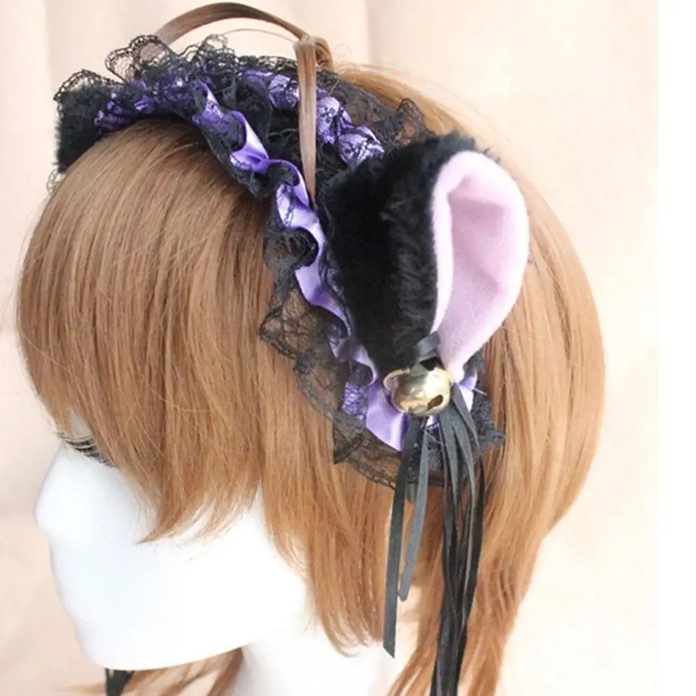 Новинка креативная Готическая Лолита горничная Женская Кружевная повязка на голову с оборками плюшевые кошачьи ушки семейная Лолита косплей обруч для волос