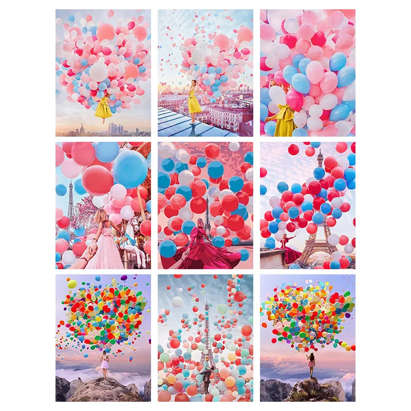 Алмазная 5D картина сделай сам, мозаика в виде пейзажа с розовыми воздушными шарами, вышивка крестиком, украшение для дома, настенная наклейка, рождественский подарок