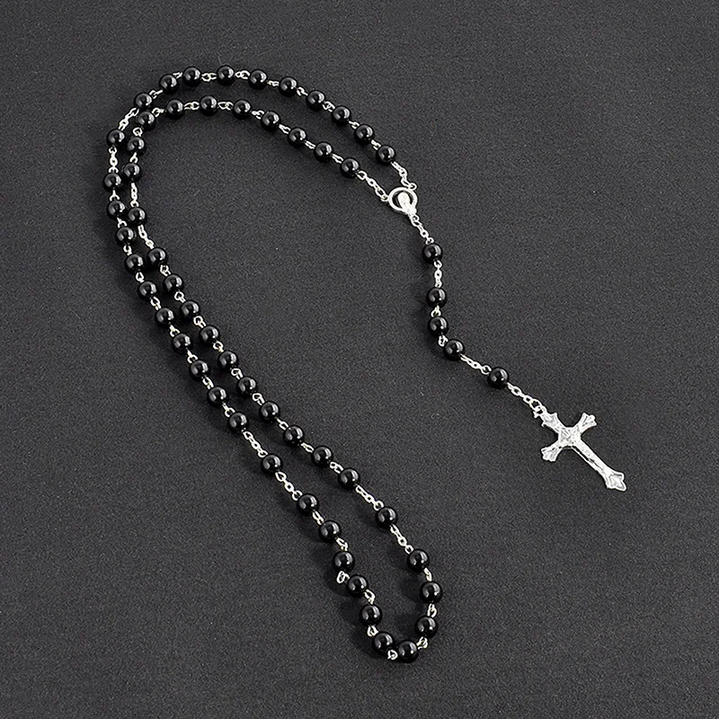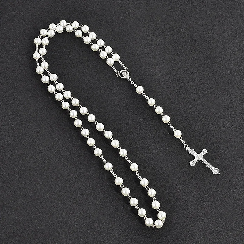 Длинная цепочка с имитацией под жемчуг и Иисусом