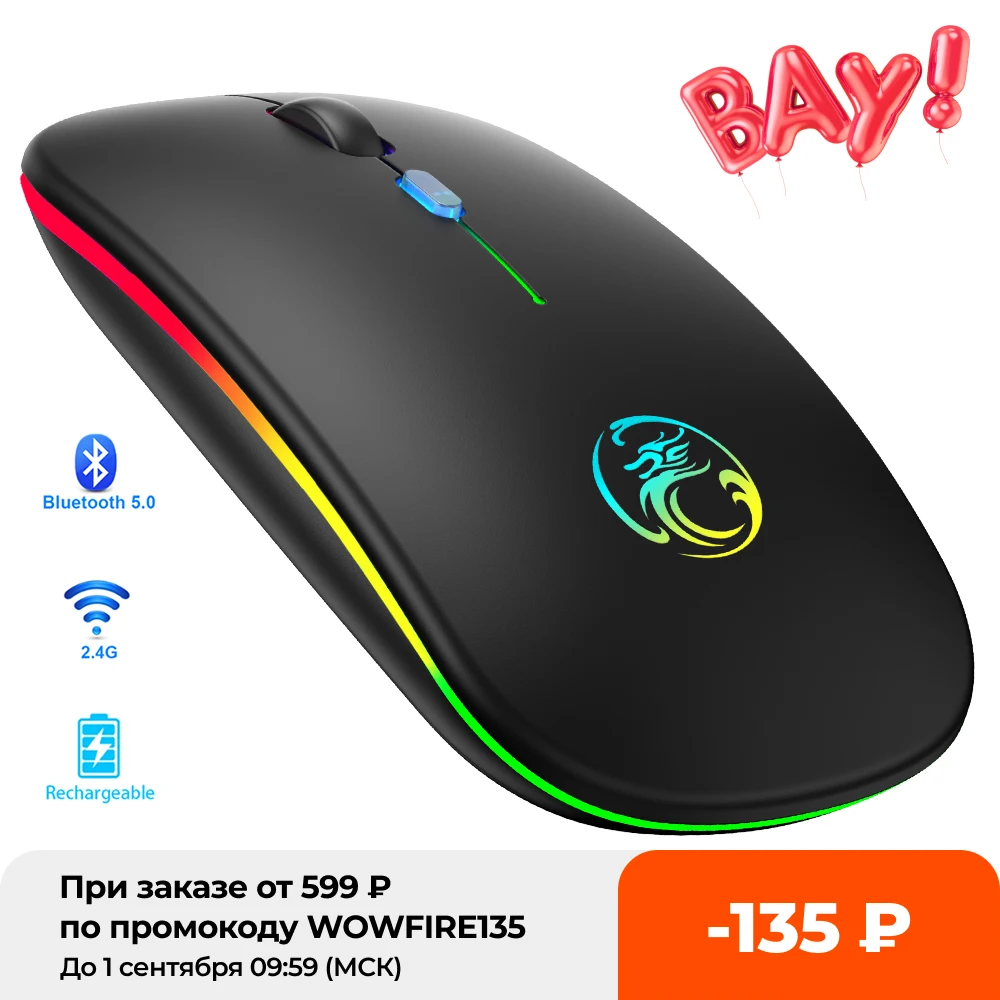 Bluetooth-мышь беспроводная аккумуляторная эргономичная со светодиодной подсветкой