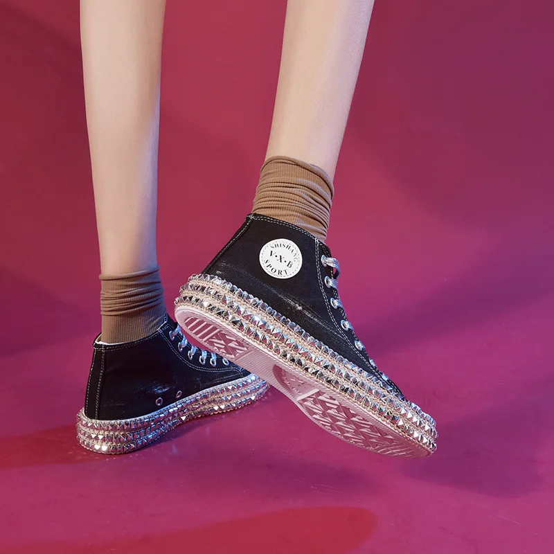 Туфли с высоким берцем, парусиновая обувь, Новинка осени 2021, корейские туфли для студентов, тканевые туфли с заклепками, женские кроссовки