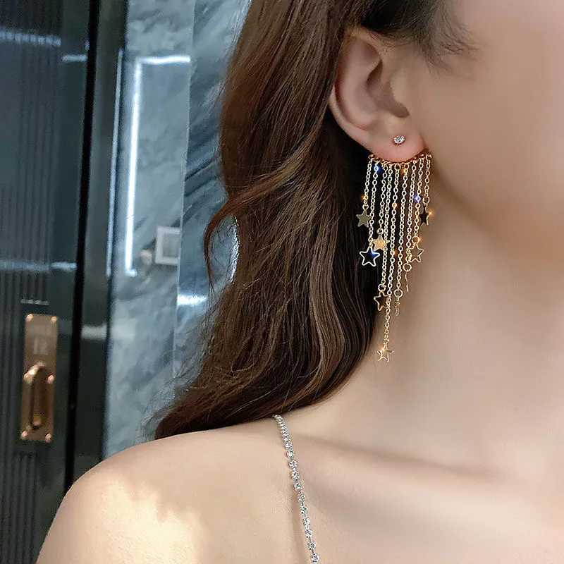 Серьги женские, с кисточками и звездой, винтажные, задняя подвеска