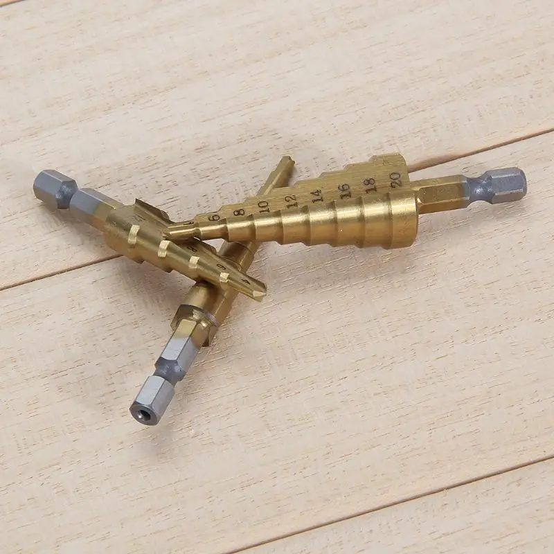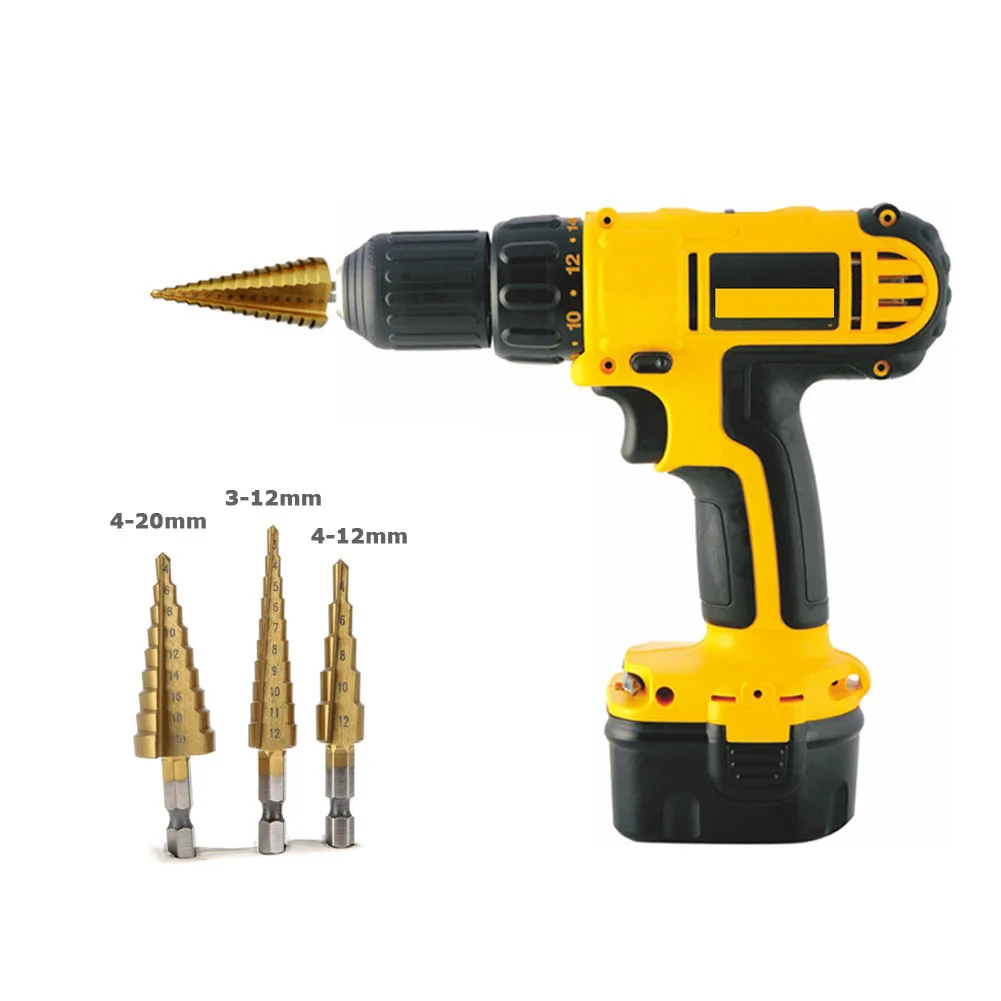 Набор ступенчатых Сверл из быстрорежущей стали с титановым покрытием, 3 шт., электроинструменты для деревообработки, металла, скручивания, резак для отверстий, ступенчатый конусный инструмент