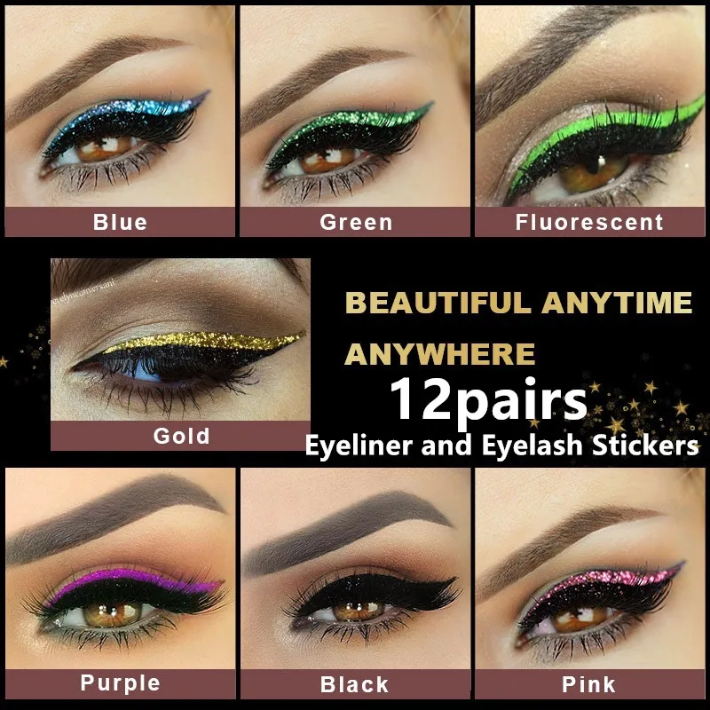 12 пар 3D 2 в 1 многоразовые наклейки для подводки глаз и ресниц Водонепроницаемые самоклеющиеся кошачьи стильные подводки для век инструменты для макияжа Smokey