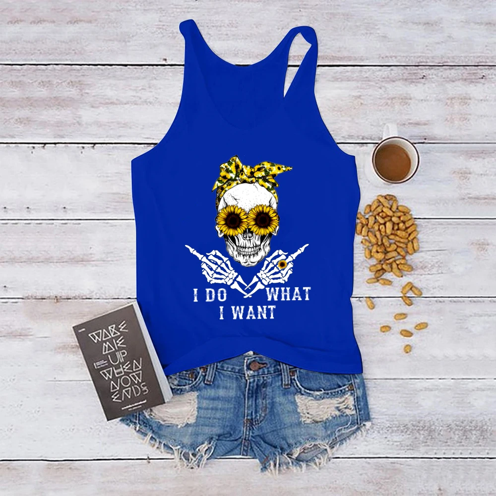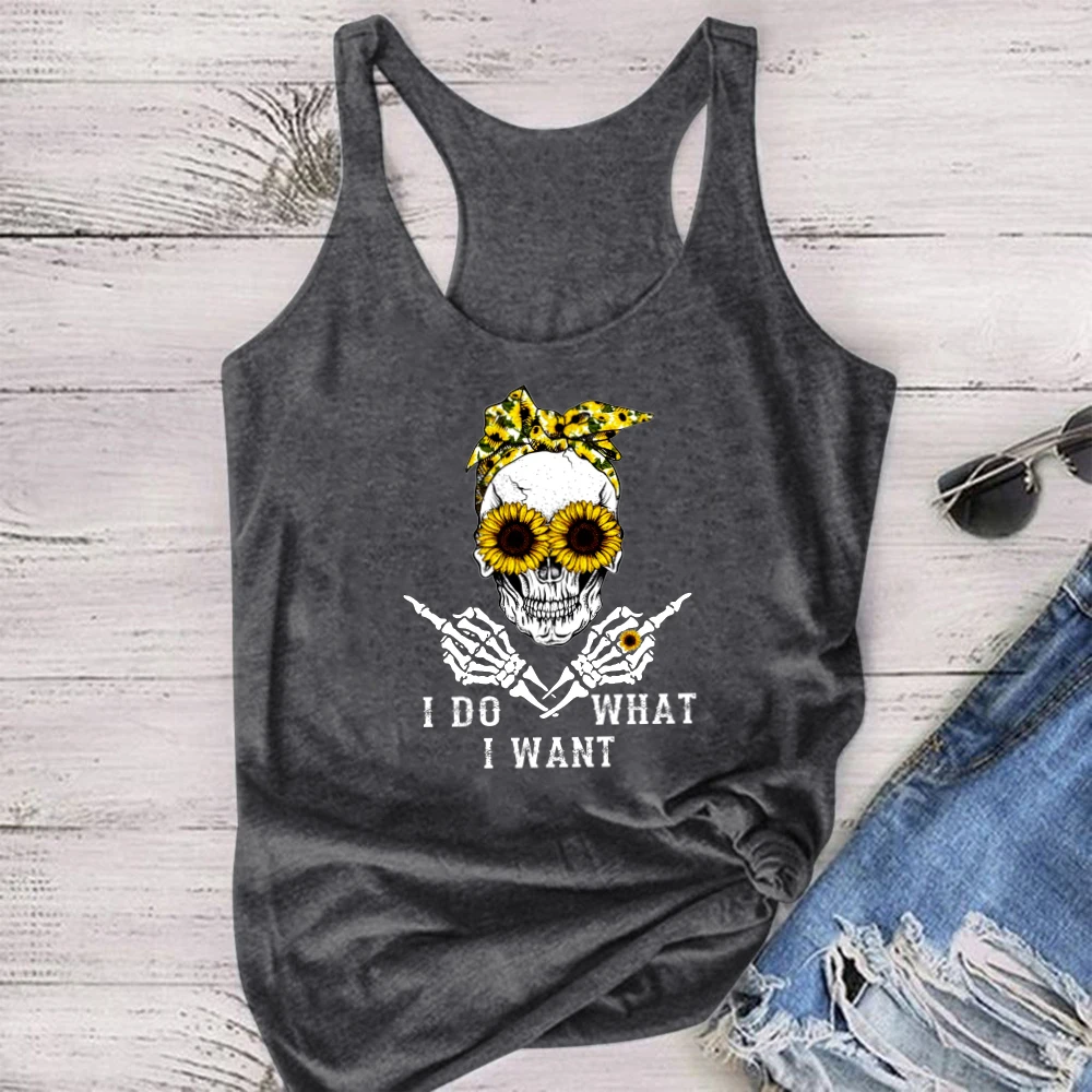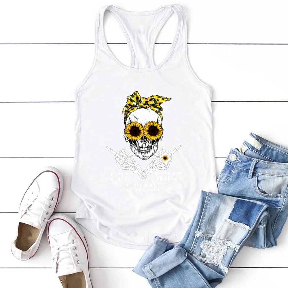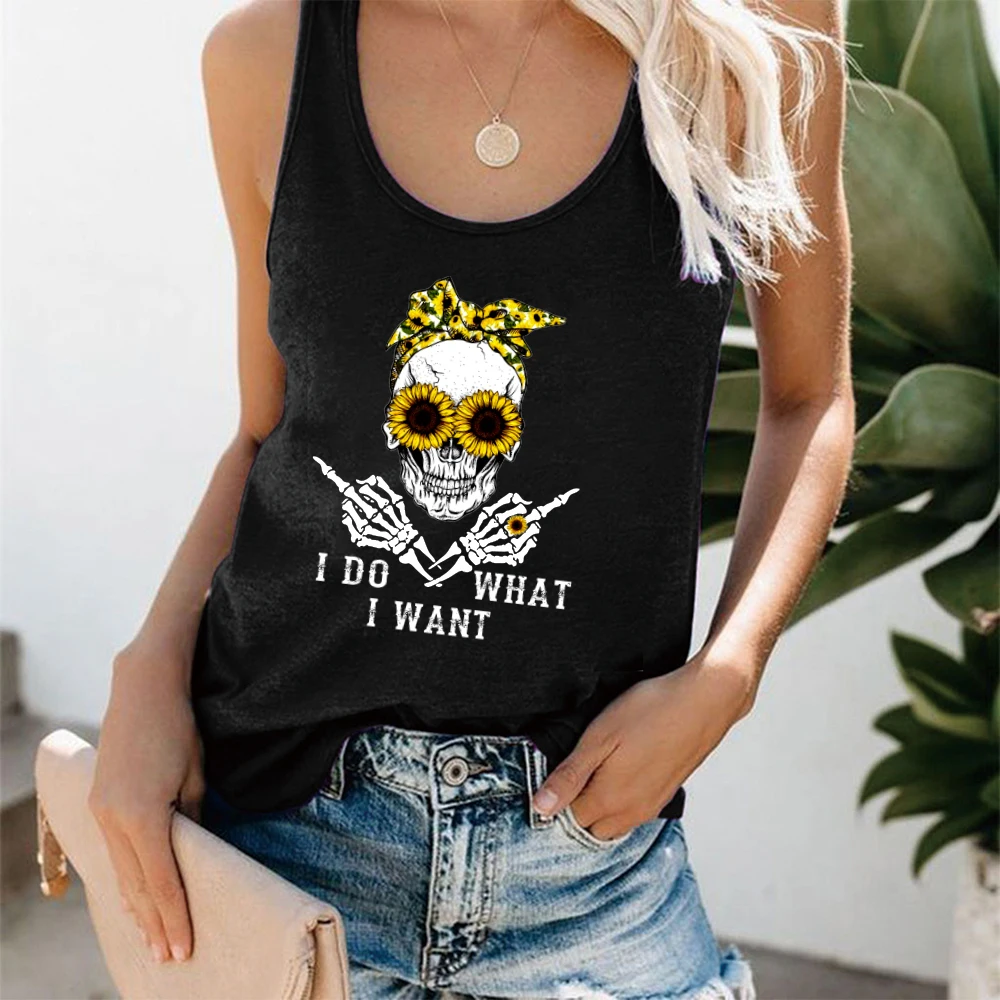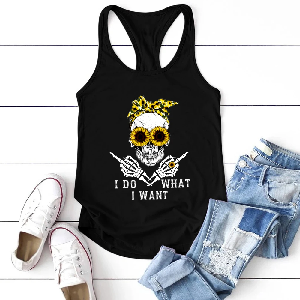 Забавные женские топы на бретельках I Do What I Want Подсолнух с принтом черепа Харадзюку модный жилет без рукавов Camiseta Tirantes Mujer