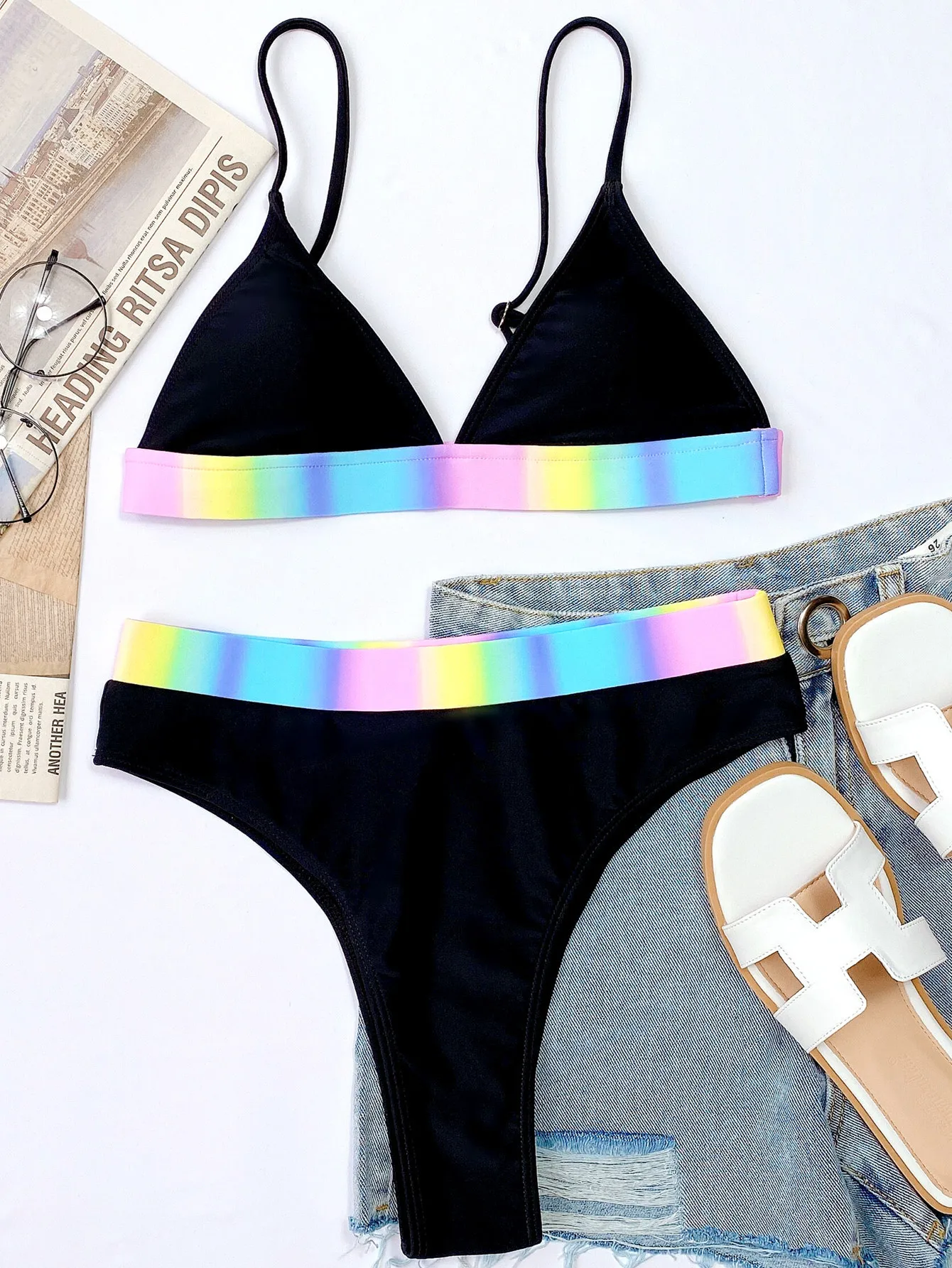 Новинка 2021, комплект черного бикини с эффектом пуш-ап и высокой талией, женские купальники, купальные костюмы, купальники, бикини, купальники