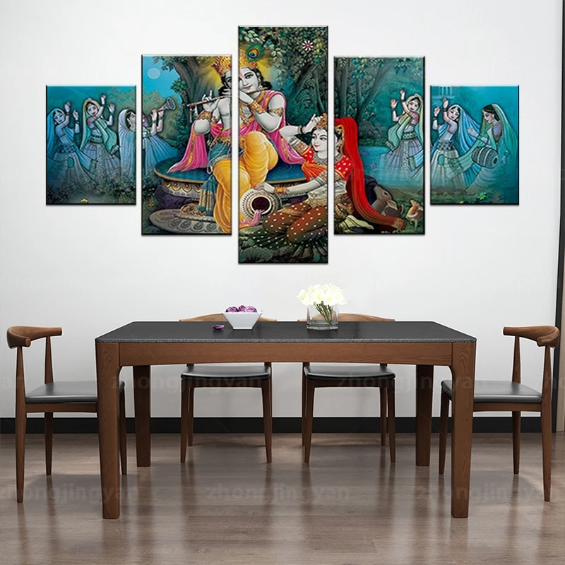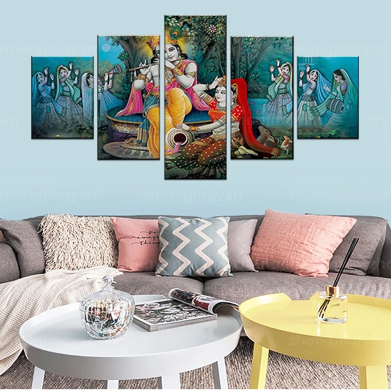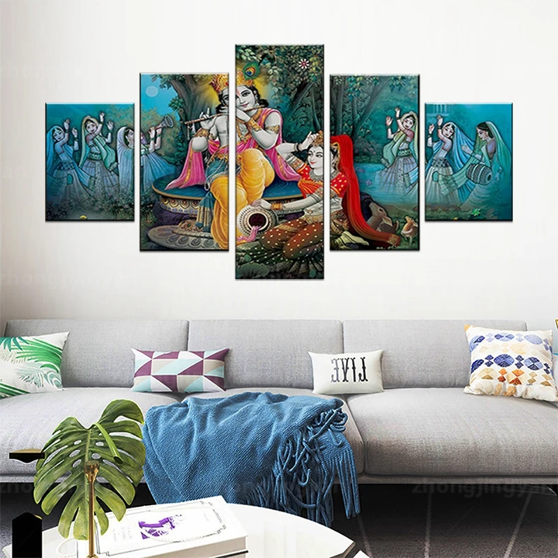 Radha Krishna Canvas художественная Настенная роспись домашний декор, картины Radha Krishna, 5 шт., плакат в рамке, настенное украшение, готов повесить
