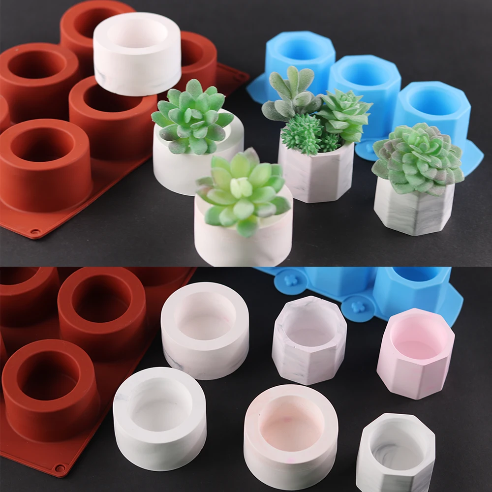 Круглая силиконовая форма с 6 отверстиями, мясистый цветочный горшок для самостоятельного изготовления глиняного гипса, цветочного горшка, подсвечника, украшение для дома
