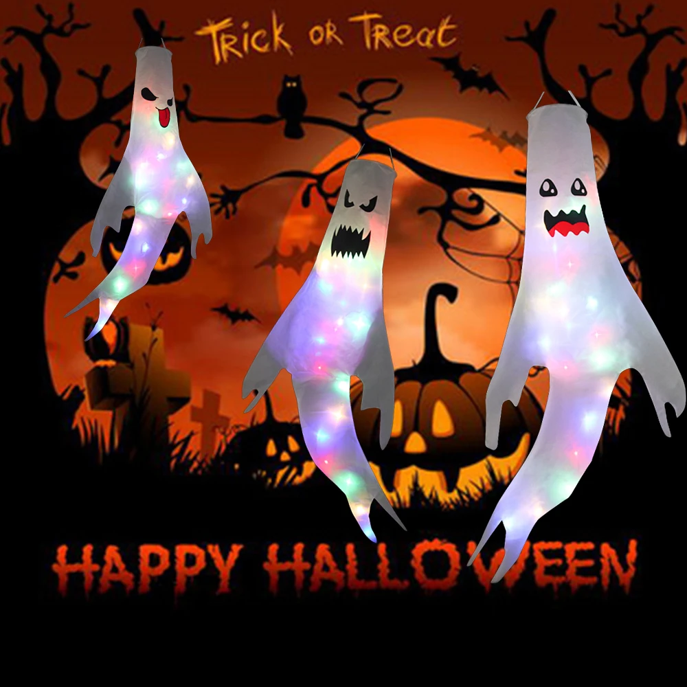 Светодиодный светильник-призрак на Хэллоуин, подвесной жуткий флаг-...
