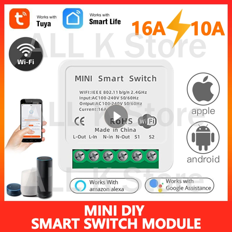 Модуль интеллектуального переключателя Tuya, дистанционное управление через мобильное приложение, Wi-Fi, умный датчик, таймер, умная жизнь с Alexa, Google Home и т. д. 16A10A