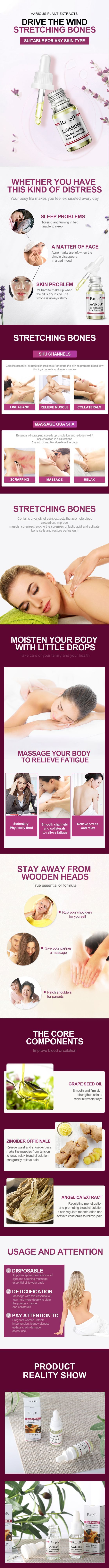 Органическое эфирное масло высокой чистоты обогащено несколькими натуральными экстрактами, которые быстро попадают в кожу, удаляют препятствия для меридианов, выводят токсины из организма без жирности, помогают восполнить влагу, питательные вещества для кожи, осветляет тонкие морщины, подтягивает упругую кожу, снимает психологический стресс, физический Фати-ГЭ, Улучшите сон и сделайте вашу жизнь более здоровой.