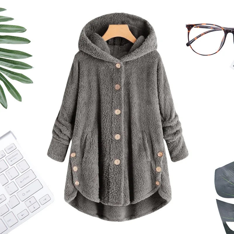 Женская винтажная зимняя верхняя одежда с капюшоном, однотонные модные теплые пальто больших размеров, повседневные удобные шерстяные пальто на пуговицах с длинным рукавом