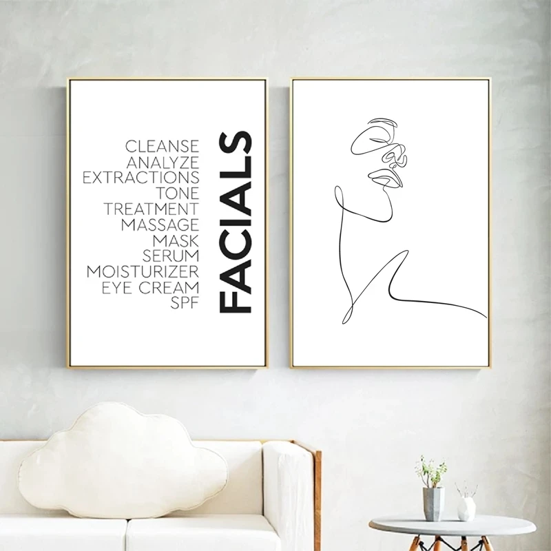 Лицевые цитаты, печать на холсте, спа, красота, Декор, эстетический подарок, женщина, лицо, эскиз, одна линия, рисование, художественная живопись, скандинавский Декор