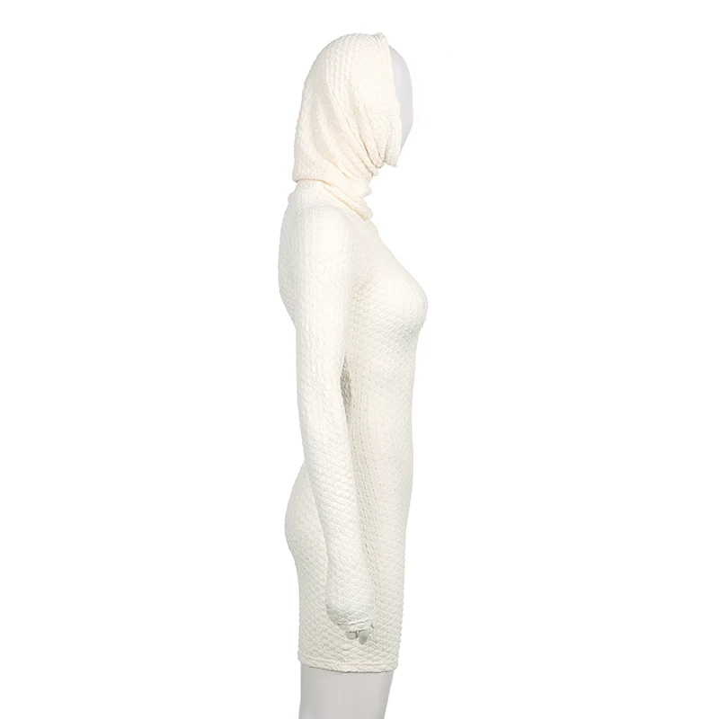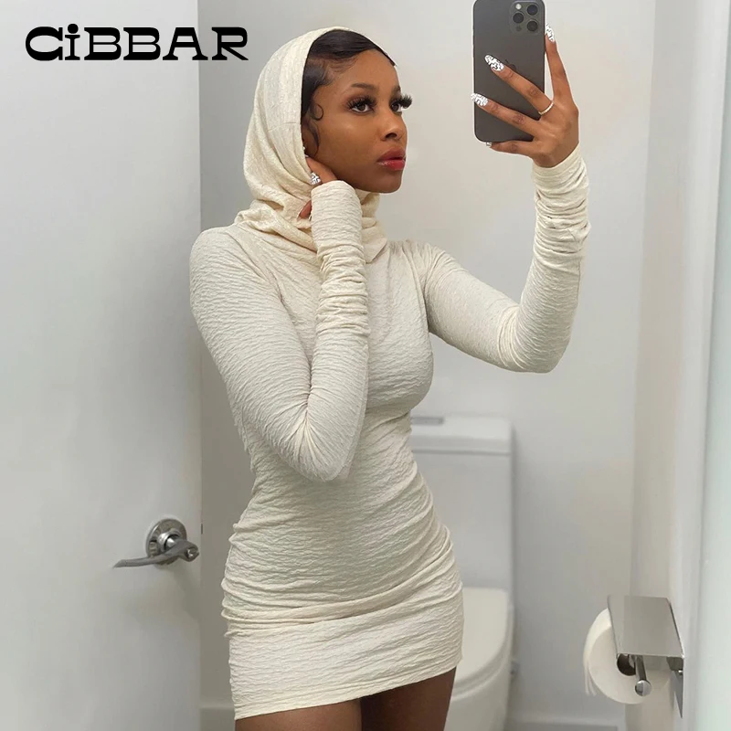 CIBBAR однотонное облегающее мини-платье с капюшоном, женское осеннее винтажное сексуальное облегающее платье с длинным рукавом, элегантное облегающее уличное платье