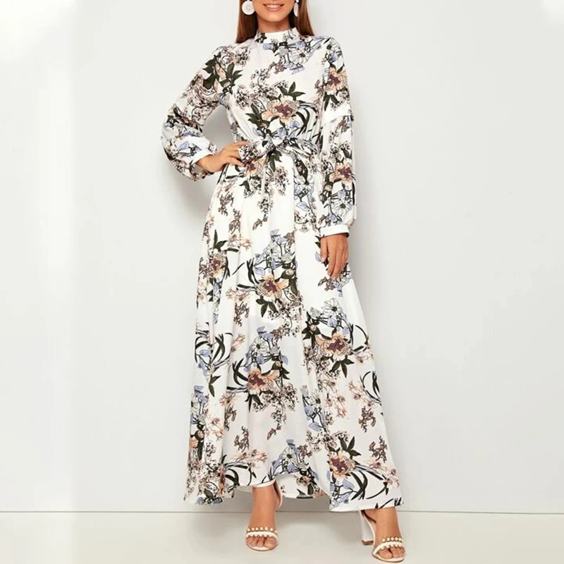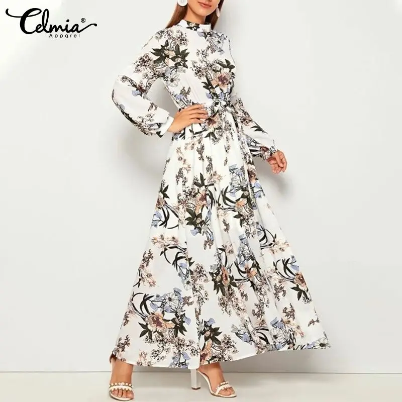 Платье Celmia женское с круглым вырезом, длинное Бандажное элегантное праздничное Макси-платье с длинным рукавом и высокой талией, с цветочным принтом, осень 2021