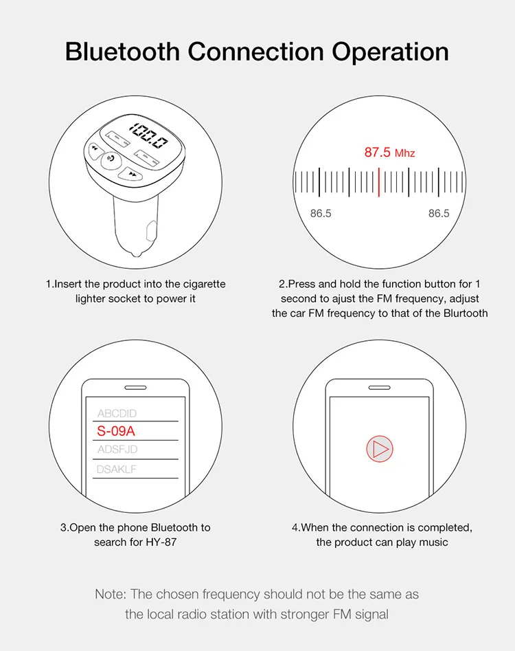 Полные характеристики:Высокое качество и четкая музыка bluetoothНажмите Зеленую кнопку вызова, чтобы ответить на звонокОчень прост в использовании, с руководствомДва дополнительных USB слота для зарядки телефонаПоддержка быстрой зарядки совместимых устройствВозможность воспроизведения музыки через Micro SD/USBВстроенный микрофон для общения с друзьямиРазмер продукта: 4 0*40*75 ммВес: около 42 грамм (включая упаковку)Интерфейс калькулятора: высокоскоростной USB 2,0Экран: светодиодный экранПоддержка TF-карты/объема U-диска: ≤ 64 ГБИсточник питания: DC12V-24VПоддержка типов файлов: MP3 / WMA / APE / FLAC / WAVРабочий ток: 10 -- 2000 мА, 12 В постоянного токаБитрейт: 64-320 кбит/сЧастотный диапазон FM: 87,5-108 МГц (шаг 100 кГц)Отношение сигнал-шум: 85 дБ (FM: 65 дБ)Гармонические искажения: <0.05% (FM: <0.1%)Рабочая температура: 0 ℃-60 ℃Расстояние запуска: <5 метровПосылка ция: автомобильное зарядное устройство * 1