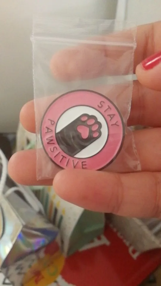 Эмалированные значки в виде розовой кошачьей лапы, брошь для девочек с надписью Stay Pawsitive, Значки для сумки, рубашки, юбки, ювелирные изделия для детей и женщин