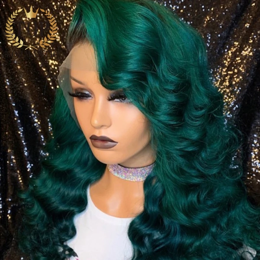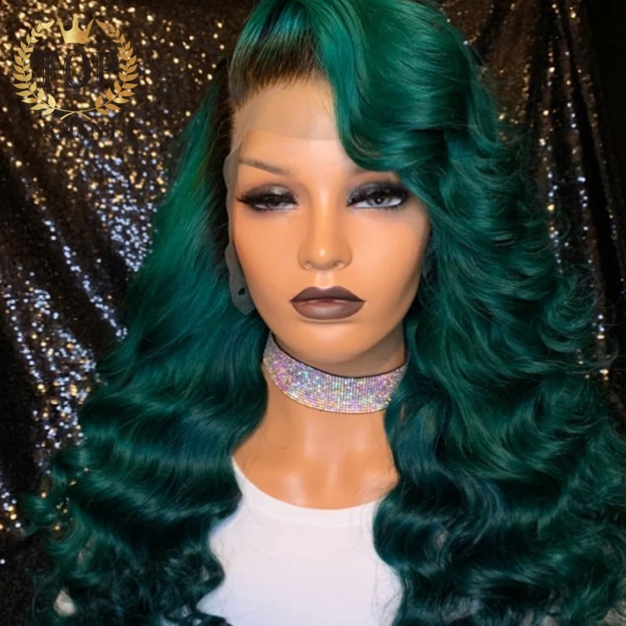 Topnormantic Омбре зеленый цвет 13x 6 кружевные передние парики для женщин бразильские Реми человеческие волосы свободные волнистые парики предварительно выщипанные волосы