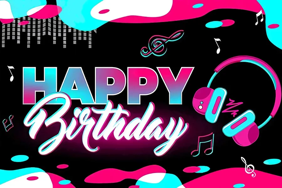 Музыка Радио Благословение Девушки С Днем Рождения Фотография Фон Детское Шоу Украшение Партии Фото Ткань Замечательный TOK Музыкальная Нота Красочный Матовый Виниловый Фон