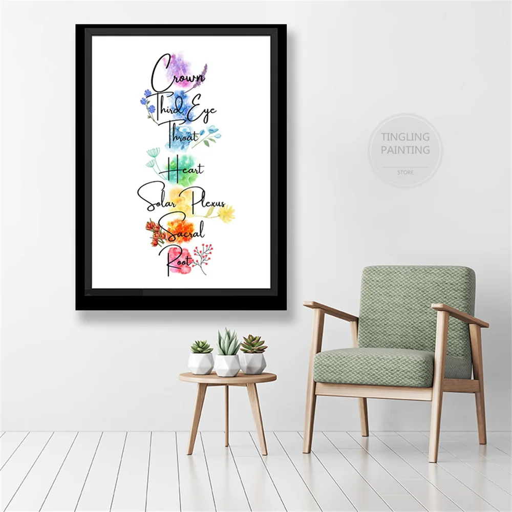 Цветочные принты чакр 7 Чакр Чакры для медитации Декор для комнаты йоги Настенное искусство с цветами Картина на холсте