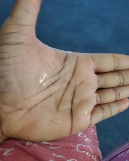 1. Положите 2-3 капли натурального имбирного масла для роста волос на ладонь;